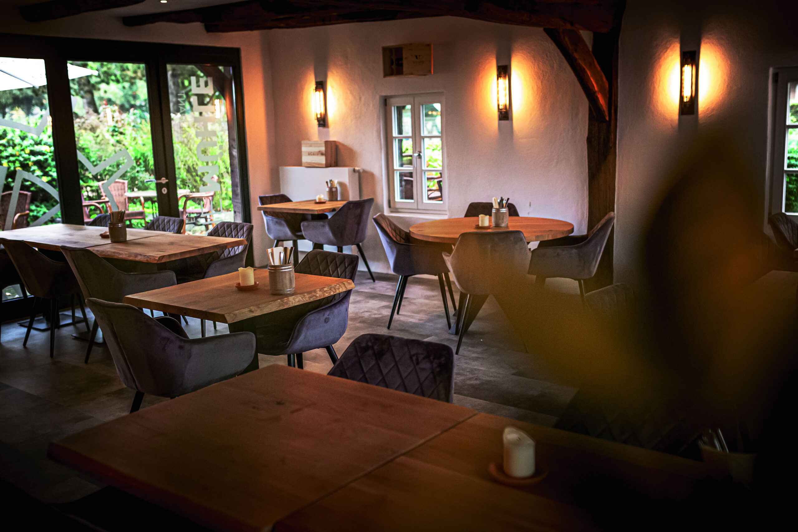 Das wohlig-warme Ambiente unserer schönen alten Wassermühle bietet den idealen Rahmen für sinnlichen Genuss. Ganz gleich, ob Sie ein entspanntes Abendessen mit der Familie, ein Geschäftsessen oder ein romantisches Dinner planen: Unser herzlicher Service wird Sie beeindrucken.